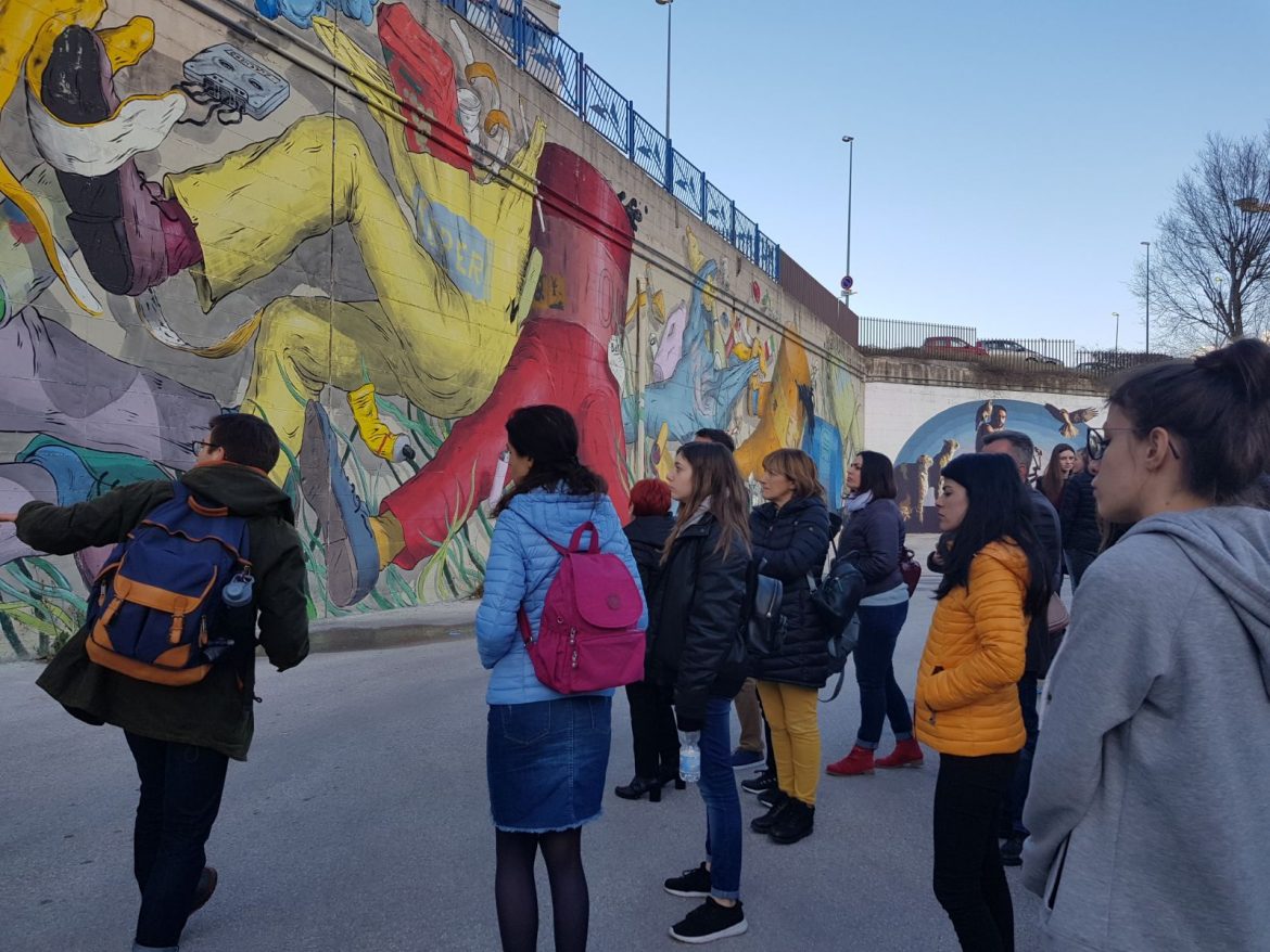 Subito dopo la visita a Palazzo di Città il tour tra la street art. Il percorso ha preso il via dal Terminal di Campobasso e dal murales che ha come tema proprio quello dei rifiuti urbani. Si tratta del disegno realizzato dall’artista abruzzese Alleg, nel corso dell’edizione 2017 del festival Draw the Line, promosso dall’associazione Malatesta. Il tour è proseguito tra via Liguria e via Marche dove sulle facciate di alcuni palazzi trovano posto opere di artisti come Peeta, Dado, Zed1 e altri, finiti alla ribalta delle cronache internazionali.