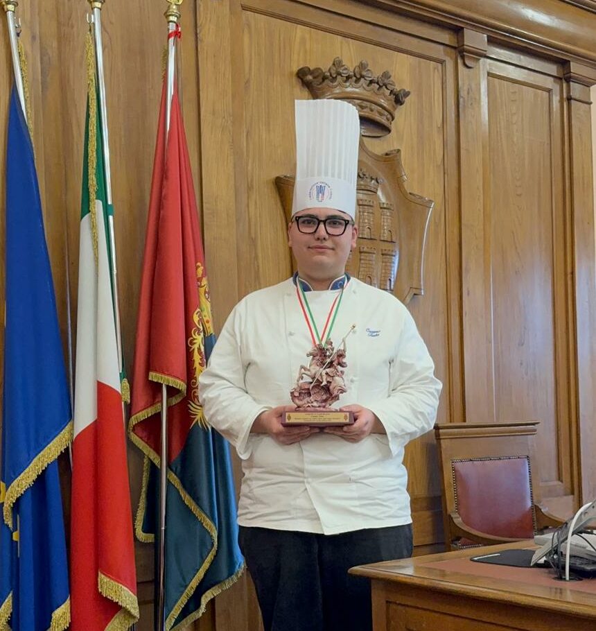 Il giovane chef, eccellenza molisana ai fornelli e promessa della cucina italiana, ha ricevuto in dono una statua di San Giorgio, simbolo della città, come segno di riconoscenza per aver portato con orgoglio il nome di Campobasso in una competizione nazionale di altissimo livello.