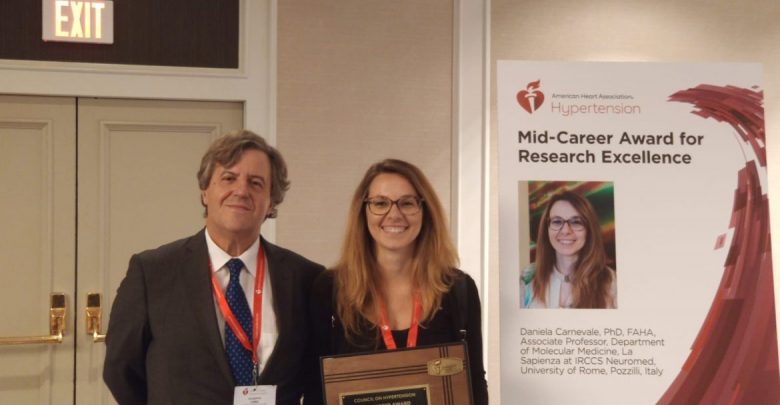 La Professoressa Daniela Carnevale, del Dipartimento di Angiocardioneurologia e Medicina Traslazionale dell’I.R.C.C.S. Neuromed di Pozzilli e Professore associato del Dipartimento di Medicina Molecolare nell’Università Sapienza di Roma, ha ricevuto il riconoscimento “Mid-Career Award for Research Excellence” nel corso del meeting “Hypertension 2019 Scientific Sessions” dell’American Heart Association che si sta svolgendo in questi giorni a New Orleans, Louisiana, Stati Uniti.