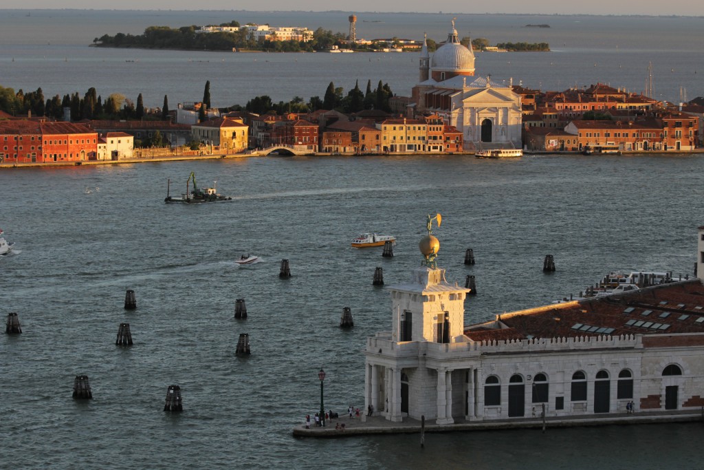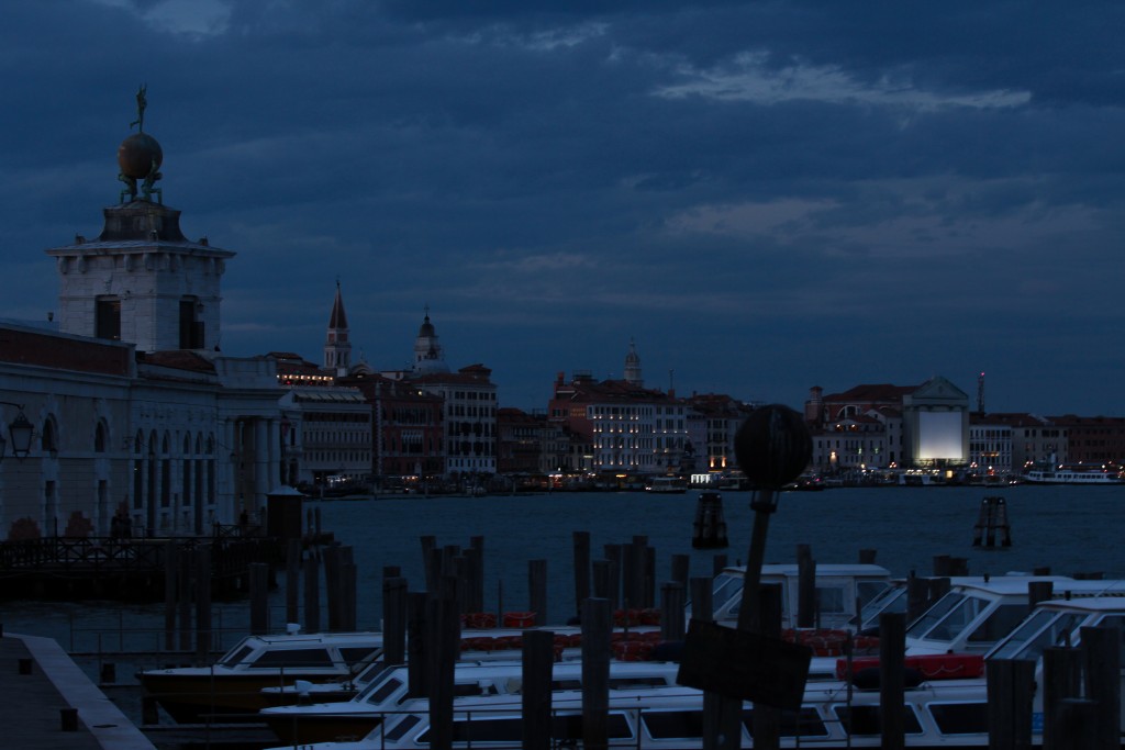 Sono qui, sopraffatta dalla bellezza. Appena il tempo di cambiarmi, prendere la mia attrezzatura e dalla Calle Goldoni sono subito al bacino Orseolo e finalmente, come in un gesto da prestigiatore, da un sotoportego buio e misterioso appaiono Piazza San Marco, la Basilica dei sogni, i bambini coi piccioni, i giapponesi annoiati al Caffè Florian e d’un tratto la bellezza ultramarina della laguna, sui cui si posano miracolosamente San Giorgio Maggiore e, poco più lontano, la Punta della Dogana e la Basilica della Salute. L’importante ora è guardare. Chi impara a guardare saprà cosa dire e capirà come dirlo.