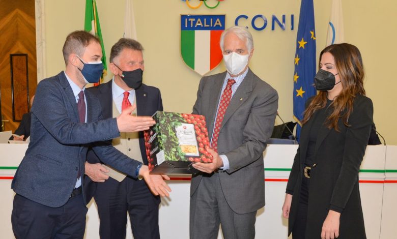 A Roma, in occasione dell’assemblea nazionale, Renato Freda dell’ufficio marketing de La Molisana ha consegnato nelle mani del presidente Coni, Giovanni Malagò, una valigetta di pasta che simbolicamente rappresenta il dono.