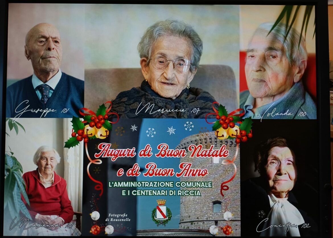 Quest’anno l’amministrazione comunale di Riccia ha scelto di fare gli auguri per le feste natalizie non con il consueto biglietto ma con un omaggio ai centenari riccesi, memoria storica del paese e simbolo di vitalità che sfida il tempo.