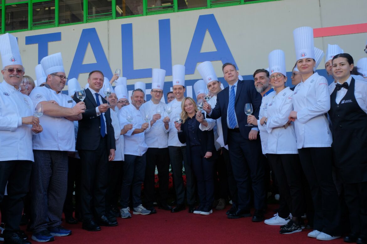 Sempre nell’area del Masaf poi, il presidente del Consiglio ha brindato insieme al ministro dell’Agricoltura, della Sovranità alimentare e delle Foreste, Francesco Lollobrigida, al sottosegretario alla Cultura, Gianmarco Mazzi, allo chef stellato Giancarlo Perbellini e al presidente di Veronafiere, Federico Bricolo, per celebrare la candidatura della Cucina italiana a patrimonio immateriale dell’Unesco.