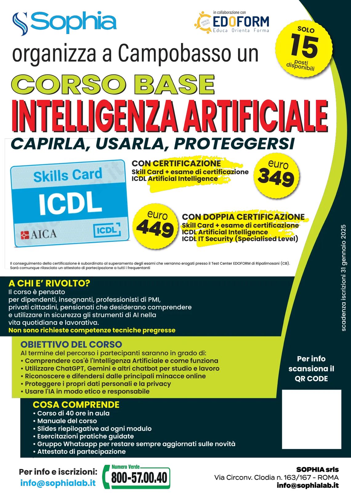 👉 Le iscrizioni sono aperte fino al 28 febbraio 2026, con possibilità di scegliere tra diverse opzioni di certificazione e accesso al corso.
