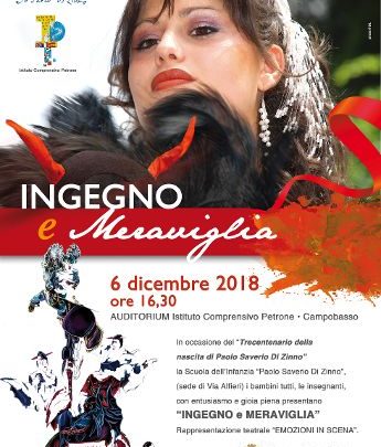 La scuola dell’infanzia di Campobasso, intitolata a Paolo Saverio Di Zinno, nell’ambito delle celebrazioni del tricentenario della nascita dell’artista e scultore del capoluogo del Molise, promuove l’iniziativa ‘Ingegno e Meraviglia’ con una rappresentazione teatrale ‘Emozioni in scena’ ed una mostra fotografica, creata dai bambini, sui 13 Misteri, (13 quadri scenici viventi o Ingegni sulla storia della Salvezza).