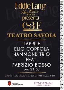 Con Bosso ci saranno alcuni tra i giovani musicisti di jazz più richiesti sulla scena nazionale e non solo come Antonio Claps all’organo hammond (Flavio Boltro, Maria Pia De Vito, Greg Hutchinson) ed Elio Coppola alla batteria (Joey De Francesco, Tony Monaco Benny Golson, Hamiet Bluiett, George Cables, Peter Bernstein).