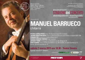 Il chitarrista cubano Manuel Barrueco, tra i vertici della chitarra classica nel mondo, virtuoso dal suono affascinante e interprete di emozionante lirismo, torna a Campobasso sabato 7 marzo 2015 alle ore 18,30 al Teatro Savoia nell’ambito della 46^ Stagione Concertistica dell’Associazione ‘Amici della Musica Walter De Angelis’.
