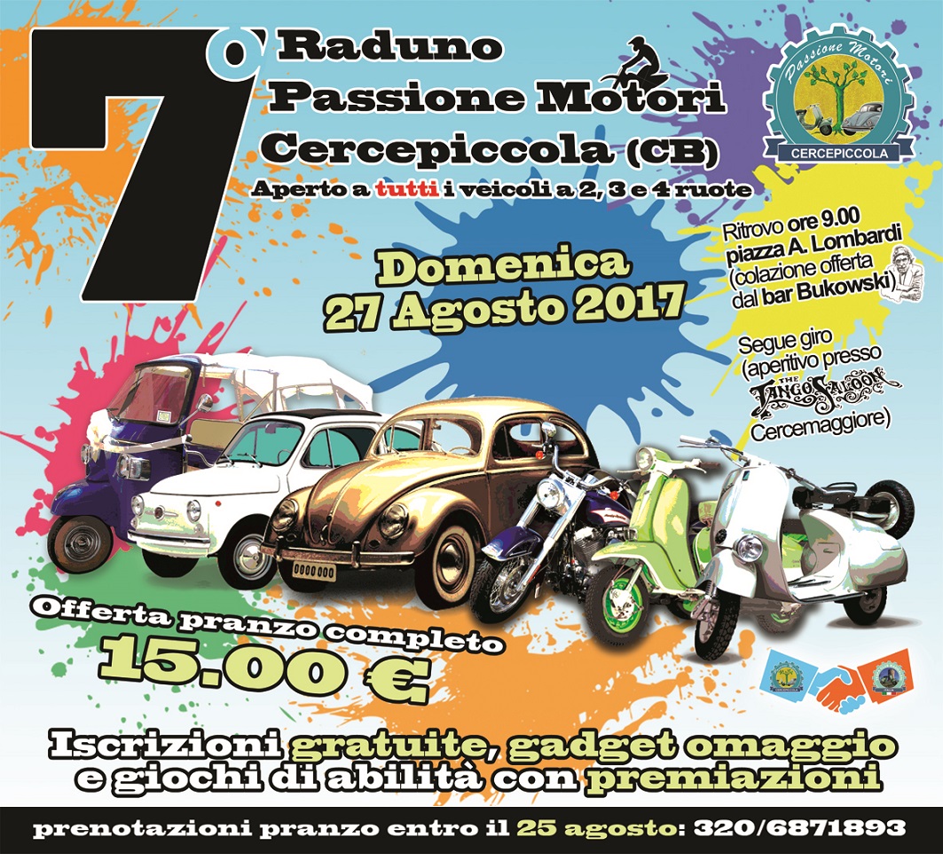 Diventato ormai un appuntamento puntuale ed immancabile, anche quest’anno si rinnova il tradizionale incontro motoristico di Cercepiccola con il “Settimo raduno Passione Motori Cercepiccola” aperto a tutti i tipi di veicoli a 2, 3 e 4 ruote.