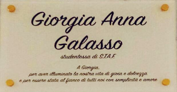 L’iniziativa di intitolare l’aula studio a Giorgia, partita da alcuni studenti, suoi amici, è stata di buon grado accolta dagli organi Accademici. Alla cerimonia sono stati presenti i famigliari, i colleghi di corso, i Professori e tutti gli amici che hanno condiviso un momento di ricordo e di riflessione.