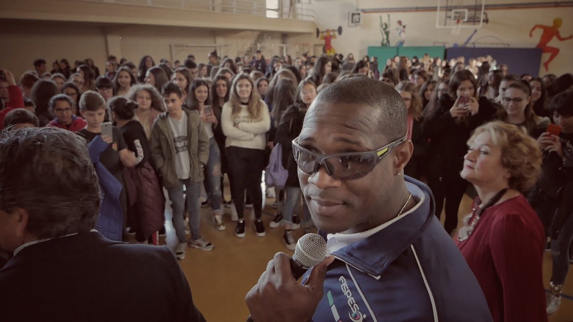 “Oggi è un giorno importante perché ci siete voi, perché avete il potere e la forza di cambiare la vostra vita, la vostra quotidianità. In questa scuola, nelle vostre case, state seminando il vostro presente e il vostro futuro: non mollate mai!” Queste le parole con le quali il campione paralimpico ha esordito dinanzi a una platea di oltre 250 ragazzi degli Istituti “Pertini” e “D’Ovidio”, una lezione stra-ordinaria che certamente ricorderanno. Oney ha voluto sottolineare quanto sia importante avere un obiettivo, riuscire ad interagire con gli altri, con un sorriso saper trasmettere positività e rispettare l’opinione di chi la pensa diversamente. Tutti possono essere campioni nella vita, tenacia e concentrazione aiutano ad acquisire sicurezza, a dominare le proprie emozioni.