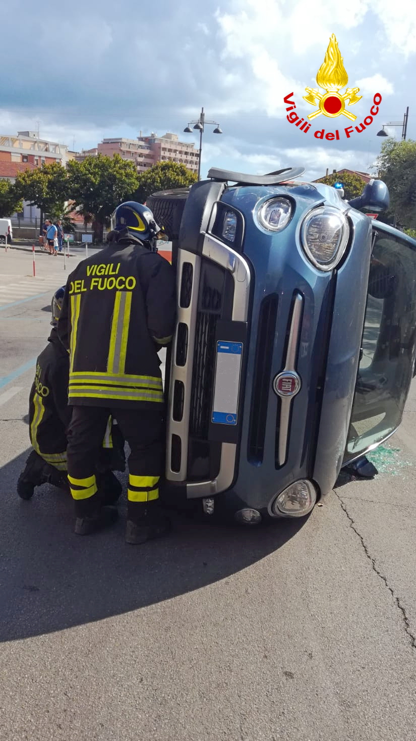 In mattinata intervento a Termoli per un’auto ribaltata in Via Molise con autista soccorso perché incastrato all’interno dell’abitacolo.