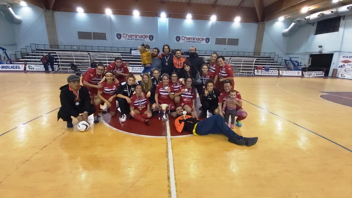 Le ragazze del Circolo La Nebbia Cus Molise conquistano la coppa Italia regionale di calcio a 5 al termine di una bellissima finale contro l’Arcadia Termoli e ora affronteranno nella fase nazionale il Grifo Peugia. Al Palafiere di Campobasso vince lo sport con le due squadre in campo che si sono affrontate al massimo delle possibilità dando vita ad un match gradevole che ha fatto divertire il pubblico presente accorso in buon numero. Alla fine ad avere la meglio è stata l’esperienza delle ragazze del Cln Cus Molise, guidate in fase realizzativa da una sontuosa Mariagiovanna D’Angelo. L’Arcadia è uscita a testa altissima dal campo dopo aver offerto un’ottima prova corale. Il trionfo finale delle ragazze di Di Gregorio ripaga tutto il gruppo, lo staff e la società, dei sacrifici fatti nel corso del tempo.