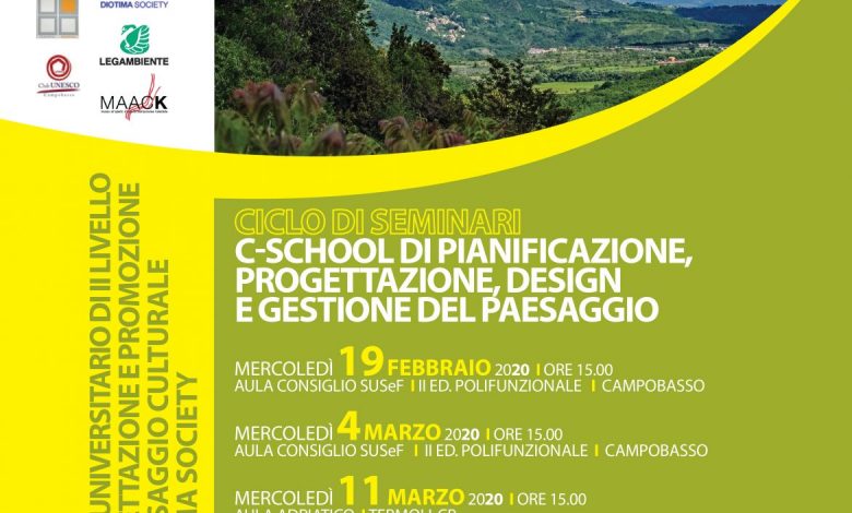 Il primo degli appuntamenti, incentrato su Paesaggio vivente/ Paesaggio culturale/ Paesaggio digitale, si terrà mercoledì 19 febbraio nell’Aula Consiglio SUSeF – II Polifunzionale, a Campobasso, a partire dalle ore 15.