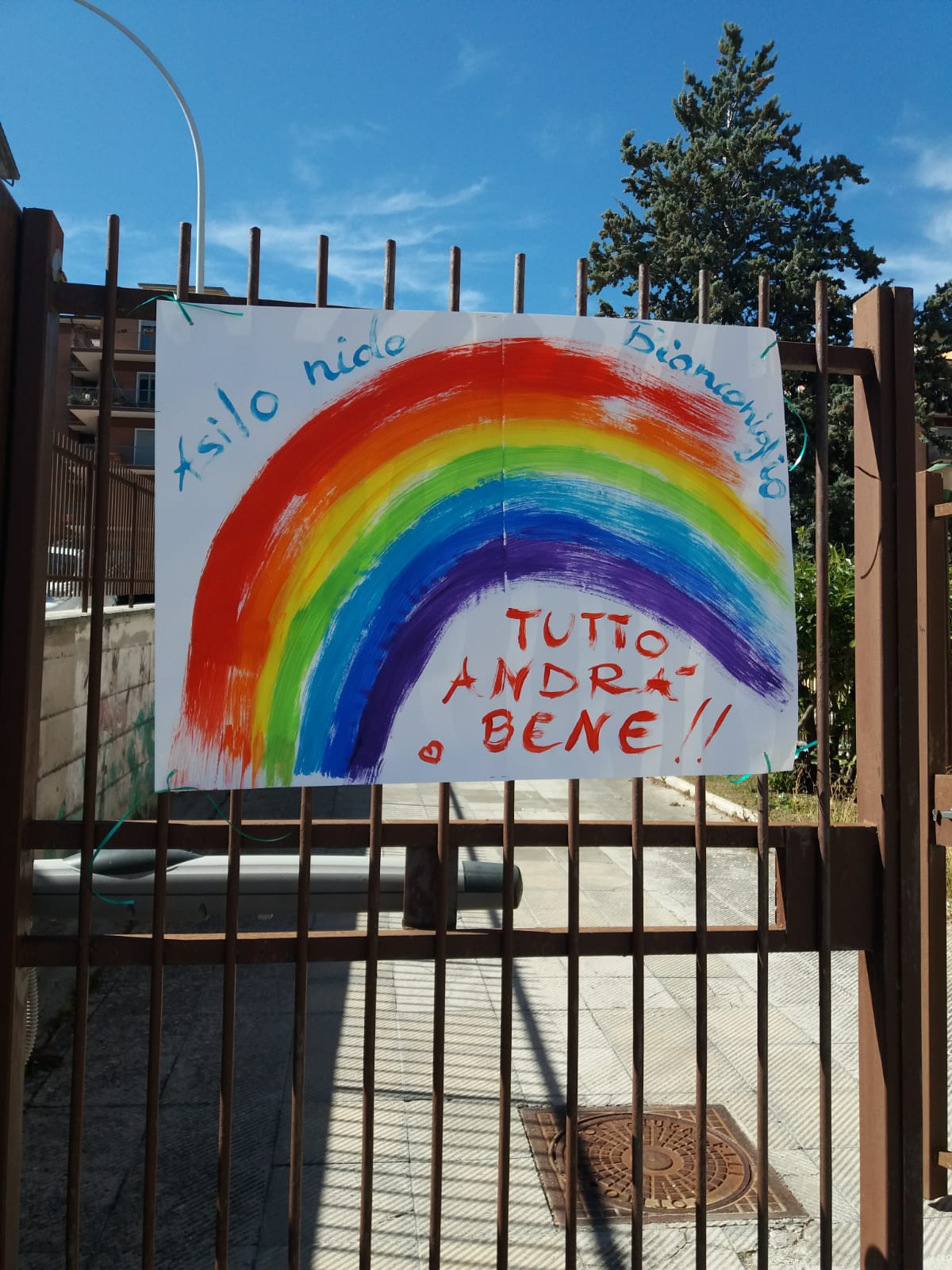 Anche l’Asilo Nido Bianconiglio di Via Verga, attraverso le educatrici del Nido, si è unito al coro con uno striscione affisso all’ingresso con su scritto ‘Tutto andrà bene’.