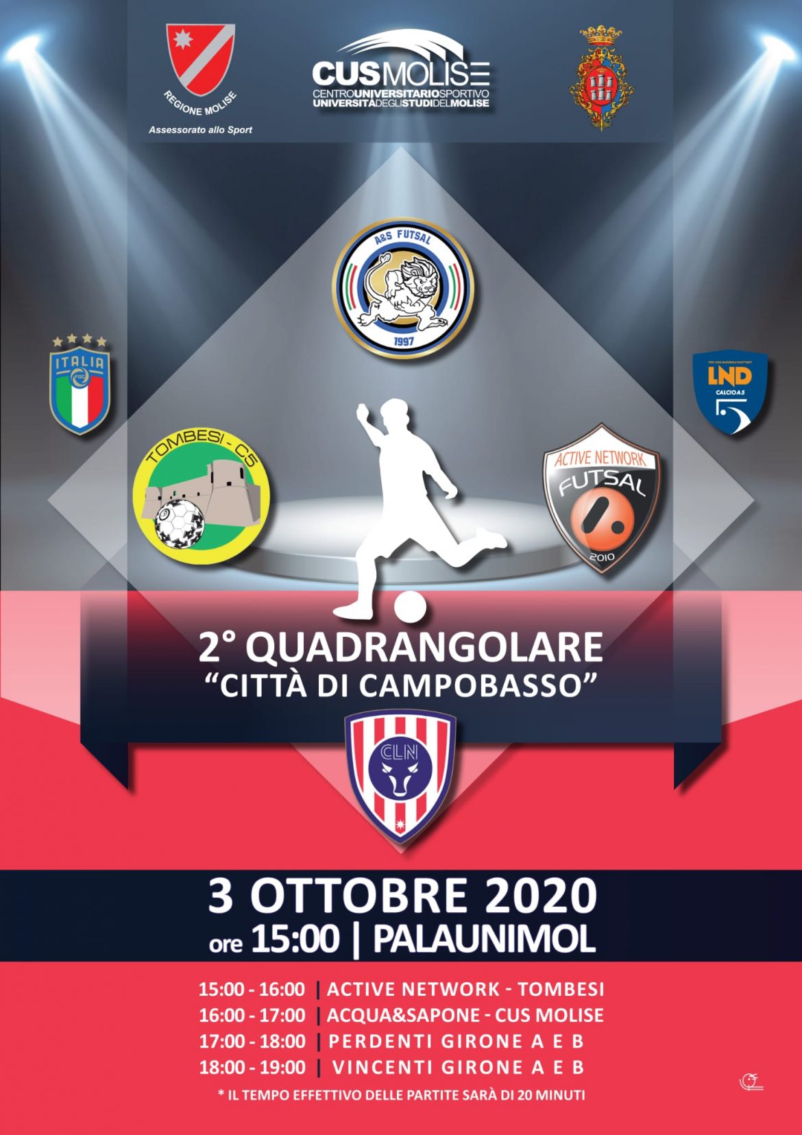 Acqua&Sapone, Circolo La Nebbia Cus Molise, Tombesi C5 e Active Network C5. Sarà un quadrangolare Città di Campobasso grandi firme, quello in programma sabato 3 ottobre 2020, organizzato dal Cus Molise.