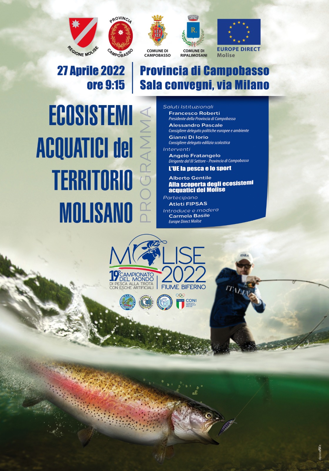 Il convegno sarà occasione per presentare l’evento ‘Molise 2022 Fiume Biferno’, 19° Campionato del Mondo di Pesca alla Trota con esche artificiali, in programma sabato 30 aprile e domenica 1° maggio 2022, nel tratto del fiume Biferno tra Baranello e Fossalto. Saranno circa 400 gli atleti in gara.