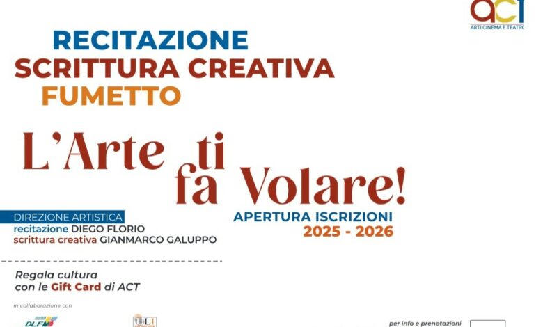 “L’ARTE TI FA VOLARE” è il motto scelto per la campagna di iscrizioni 2025/26 dall’Associazione Culturale ACT di Campobasso, compagnia teatrale professionale e laboratorio permanente di Arti Sceniche, Scrittura Creativa e Fumetto, che negli ultimi anni ha dimostrato sul campo qualità e risultati, sia sul versante delle produzioni artistiche che nell’educazione alle arti.
