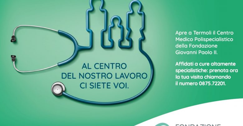 Con la Benedizione di Sua Eccellenza Monsignor Gianfranco De Luca, Vescovo di Termoli Larino, lunedì 7 gennaio 2019 alle ore 14, inizierà l’attività del nuovo Centro Medico Polispecialistico della Fondazione Giovanni Paolo II a Termoli in Corso Nazionale, 99.