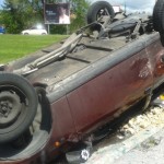 Prima di ribaltarsi l’auto si è scontrata con un’altra vettura di piccola cilindrata che ha riportato danni alla carrozzeria.