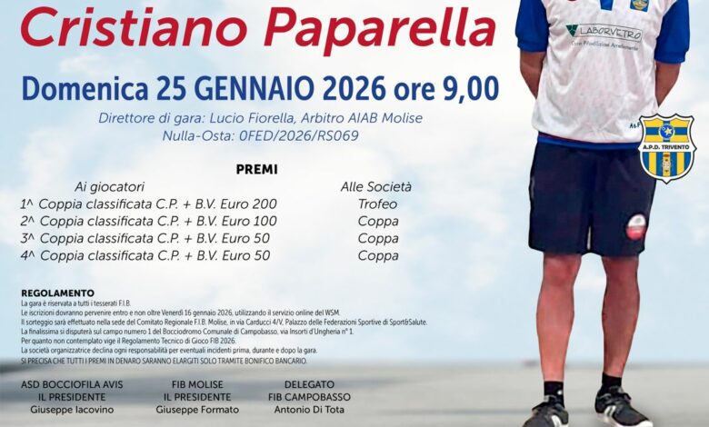 La giornata del 25 gennaio promette dunque agonismo, partecipazione e memoria, in un contesto che conferma il Molise come punto di riferimento per le bocce nel Centro e nel Sud.