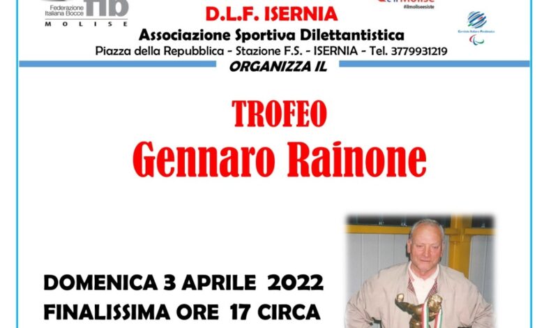 È tutto pronto per il Trofeo ‘Gennaro Rainone’, gara di bocce, Individuale Nazionale, organizzata dal DLF Isernia, società presieduta da Carmine Rainone, quest’ultimo fratello del compianto Gennaro e campione d’Italia 2021, ad Arezzo, nella Coppia di categoria C (vittoria dedicata proprio al fratello, ndr).