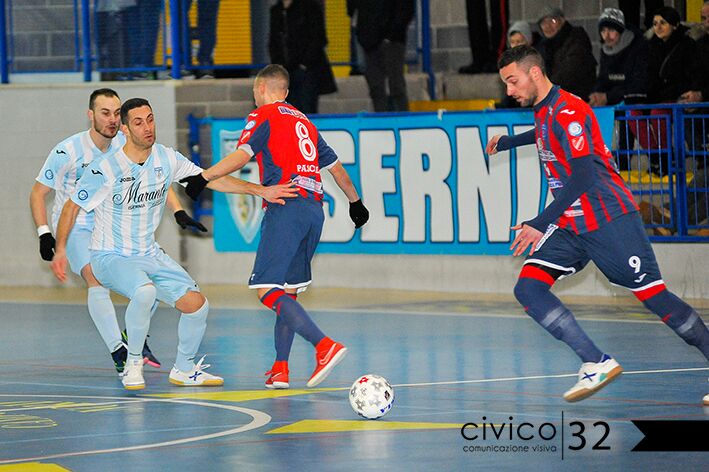 L’Isernia, forte di una panchina lunghissima e due quintetti base, nel secondo tempo dilaga e segna cinque gol con Bico Plentir, Bidinotti, Melfi e Rafinha Caregnato (IC).