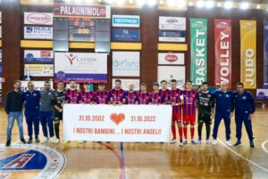 La squadra del Cln Cus Molise posa con lo striscione per ricordare le vittime del sisma di San Giuliano