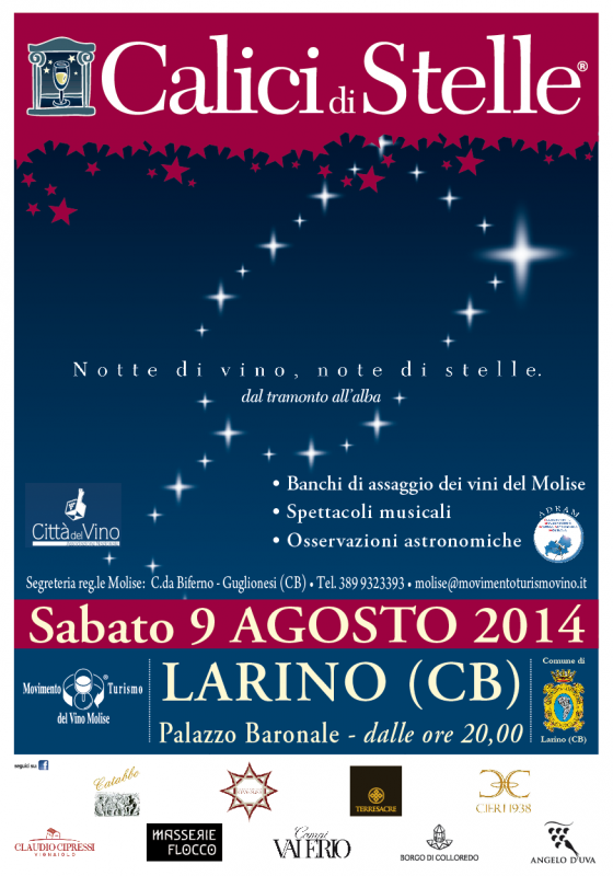 Nel Molise l’evento Calici di Stelle è stato organizzato dal Comune di Larino e dal Movimento turismo del vino Molise e si terrà nello splendido Palazzo Ducale.