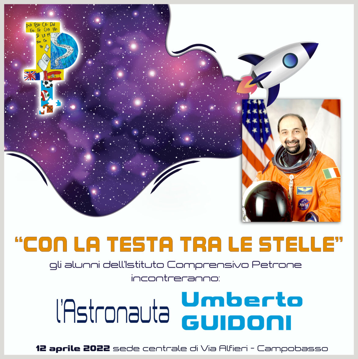 Il 12 aprile 2022 alle 10,30 presso l’Istituto comprensivo ‘I. Petrone’ di Campobasso si terrà un incontro degli studenti della scuola primaria e secondaria di I grado con l’astronauta Umberto Guidoni.