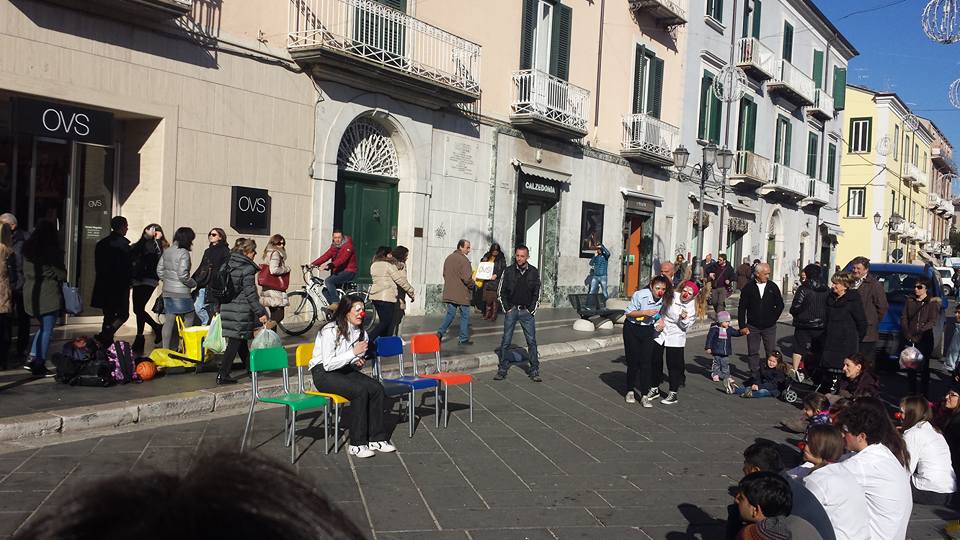 Una mattina piena di allegria e giochi, per i tanti bambini che hanno potuto assistere oggi, mercoledì 23 dicembre 2015, agli spettacoli degli artisti di strada che si sono esibiti lungo Corso Vittorio Emanuele II. L’evento, inserito nel cartellone natalizio organizzato dall’amministrazione comunale del capoluogo, è stato promosso dalla Fraternità Salesiana ‘La Riva’.