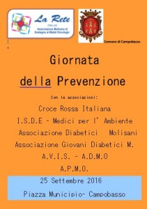 Un’iniziativa realizzata con le associazioni Croce Rossa Italiana, I.s.d.e. Medici per l’Ambiente, Associazione Diabetici Molisani, Associazione Giovani Diabetici Molisani, Avis, Admo, Apmo.
