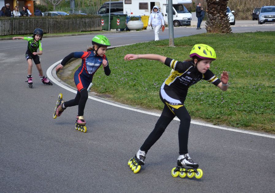 Per la categoria giovanissimi (2014-2015) gareggeranno: Ginevra Tamburro, Aurora Tavaniello e Francesco Martino impegnati nella prova di destrezza, nella due giri sprint e sui 5 giri in linea.