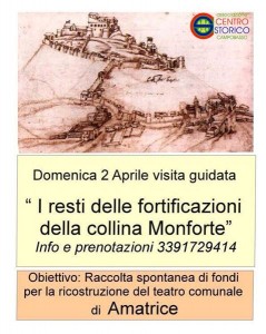 ACS_AmatriceDomenica 2 aprile l’associazione Centro Storico Campobasso propone una nuova iniziativa in favore della raccolta fondi per la ricostruzione del Teatro Comunale di Amatrice. Partecipando all’evento “I resti della fortificazioni della Collina Monforte” sarà, così, possibile essere solidali con le zone terremotate del Centro Sud Italia.