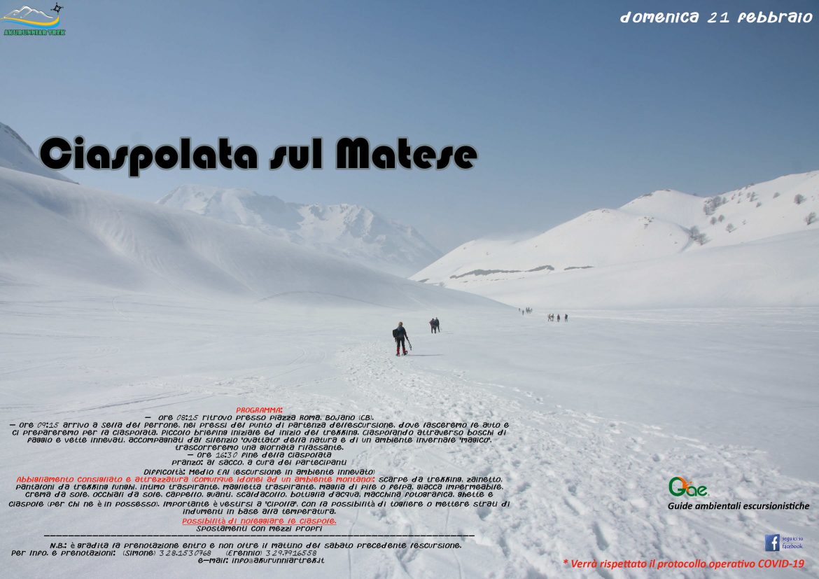 Nell’ambito delle proprie attività escursionistiche e sportive l’associazione bojanese-isernina “Akurunniar Trek”, propone per domenica 21 febbraio una ciaspolata sui monti del Matese versante molisano.