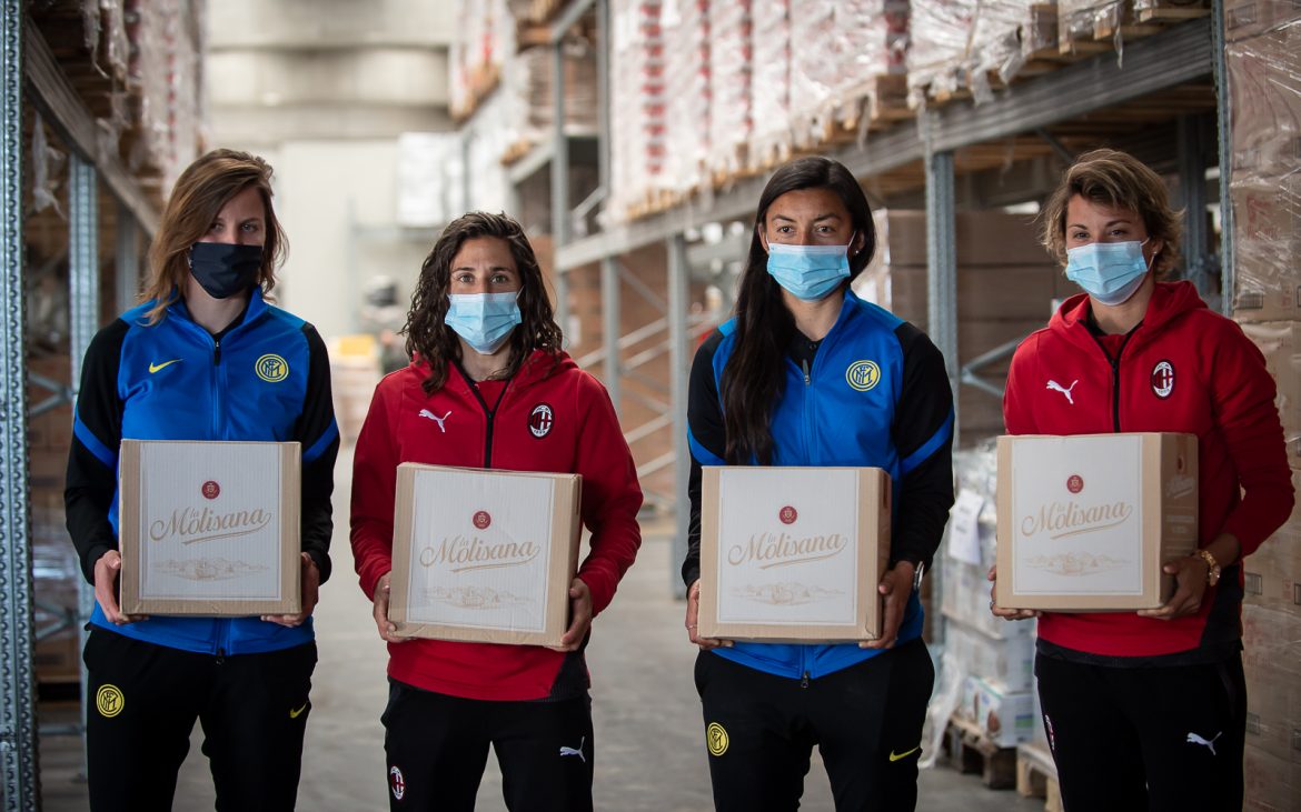 Il 24 aprile scorso, a pochi minuti dal fischio d’inizio della semifinale di ritorno di Coppa Italia femminile, la rossonera Valentina Giacinti e la nerazzurra Lisa Alborghetti si sono scambiate le due valigette di pasta in un momento che ha segnato simbolicamente il taglio del nastro dell’iniziativa. “Il nostro intento è sempre quello di tendere una mano e aiutare i meno fortunati – afferma Rossella Ferro, direttore marketing La Molisana – Abbiamo quindi coinvolto le Prime Squadre femminili di AC Milan, e FC Internazionale Milano, mettendo a disposizione il nostro prodotto che, come è noto, è un bene rifugio, ha lunga scadenza e può soddisfare le esigenze di tante famiglie.