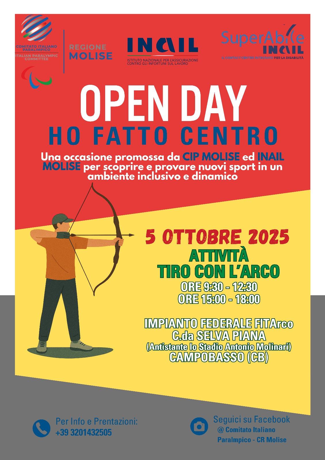 Il Comitato Italiano Paralimpico (CIP) Molise e l’INAIL Molise (Istituto Nazionale per l’Assicurazione contro gli Infortuni sul Lavoro) uniscono ancora le forze per promuovere l’accoglienza e lo sport con l’Open Day “Ho Fatto Centro”.