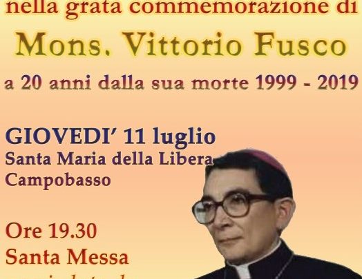 La diocesi di Campobasso –Boiano si stringe nella grata commemorazione della illustre figura ecclesiale del Molise Mons. Vittorio Fusco, vescovo di Nardò –Gallipoli, a venti anni dalla sua morte 1999 -2019. Giovedì 11 luglio alle ore 19:30 presso la Chiesa Madonna della Libera a Campobasso, sarà celebrata una Santa Messa presieduta da S.E. mons. GianCarlo Bregantini, arcivescovo Metropolita. Nonostante la sua brevità, l’episcopato di Mons. Fusco ha lasciato un segno, soprattutto nella diocesi di Nardò-Gallipoli determinante per il cammino pastorale sia sul piano dei contenuti che nello stile. Le sue azioni pastorali sono riconducibili all’Azione Cattolica e al Cammino Neocatecumenale. Mons. Vittorio Fusco è nato il 24.4.1939 a Campobasso da Antonio Fusco e Rosina Sassi, originari di San Martino in Pensilis nel basso Molise, entrambi terziari francescani e devoti di Padre Pio da Pietralcina, dal quale si recarono anche nel viaggio di nozze, dopo aver celebrato il loro matrimonio ad Assisi presso la tomba di San Francesco. Sotto la corteccia del professore, mons. Fusco aveva delle qualità, oltreché intellettuali e umane eccezionali e da tutti riconosciute, frutto di uno straordinario lavoro compiuto su di sé, anche grazie agli stimoli che gli provenivano dalla sua appartenenza all’Istituto Secolare dei Sacerdoti Missionari della Regalità di Cristo. Queste sue spiccate qualità umane lo rendevano amabile oltre ogni modo. L’autenticità e la profondità dei rapporti che stabiliva con le persone che incontrava, con le quali entrava subito in empatia cordiale e umana – come ricordano le testimonianze pervenute dalla diocesi di Gallipoli (TA) hanno generato nelle persone che lo hanno conosciuto la consapevolezza di “sentirsi accolte ed amate”. Modestia e umiltà hanno caratterizzato il suo episcopato insieme all’intuito profetico e ad una straordinaria passione pastorale con la quale sembrava volersi rivalere del tempo dedicato allo studio ed una forte connotazione missionaria della Chiesa su cui tanto insiste l’Esortazione Apostolica Evangelii Gaudium di papa Francesco. La memoria di Mons. Vittorio Fusco per la Chiesa particolare è una testimonianza ricca di benedizione e di gratitudine. Le sue spoglie sono conservate ai piedi dell’altare del SS. Sacramento nella Concattedrale di Gallipoli.