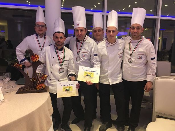 Il Molise ha stupito e continua a farlo. Ancora una volta ai fornelli. Ancora una volta in un concorso gastronomico. A portare alto il nome della regione, sfidandosi a Matera a colpi di spadellate, una giovane delegazione della Federazione Italiana Cuochi del Molise. Grazie alle loro capacità culinarie il Molise ha vinto la medaglia d’argento, dietro solo alla Basilicata, regione ospitante e attuale campioni Italiana. A convincere la giuria composta da esperti del settore piatti innovativi e curati in ogni minimo particolare. A deliziare i loro palati una finta oliva di tonno, un involtino di rombo su ceci pestati e una sfera di rombo su crema di borragine selvatica; una triglia farcita con spinaci , peperone crusco e il suo fegato, in crosta di pane di Matera, totanetti al ripieno di ricotta profumata, salsa di prezzemolo, giardinetto di verdure e insalata di fregola; dulcis in fundo, il dessert “La murgia” realizzato con una mousse al limone e una al cioccolato, un biscotto al cacao , una pralina al limoncello, una colombina al cacao e gocce di cioccolato, il tutto decorato con il sorbetto al limone e una salsa al lampone.