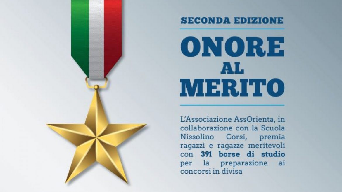 L’associazione AssOrienta e la scuola Nissolino Corsi hanno indetto la 2ª edizione del Concorso “Onore al Merito” per l’anno 2020, bando che prevede la premiazione di ragazzi e ragazze meritevoli con 391 borse di studio per la preparazione ai concorsi in divisa. L’intera fase di selezione potrà essere svolta in remoto dal proprio smartphone o dal proprio computer.