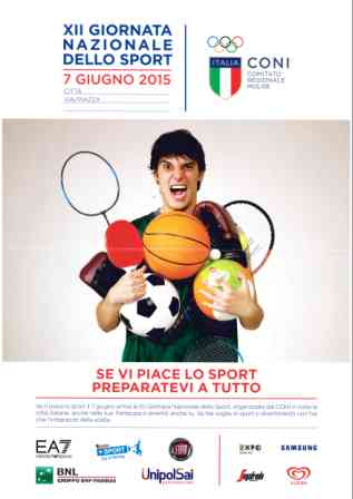 Torna l’appuntamento con la Giornata Nazionale dello Sport. Domenica 7 giugno si celebra infatti la 12^ edizione della manifestazione, indetta dal Coni per decreto della Presidenza del Consiglio dei Ministri. L’iniziativa, che si svolge ogni anno la prima domenica di giugno, coinvolge centinaia di Comuni d’Italia con la finalità di diffondere la pratica sportiva e i suoi valori, invitando i cittadini a un confronto con lo sport in migliaia di manifestazioni, quest’anno sotto lo slogan “Se vi piace lo sport preparatevi a tutto”.