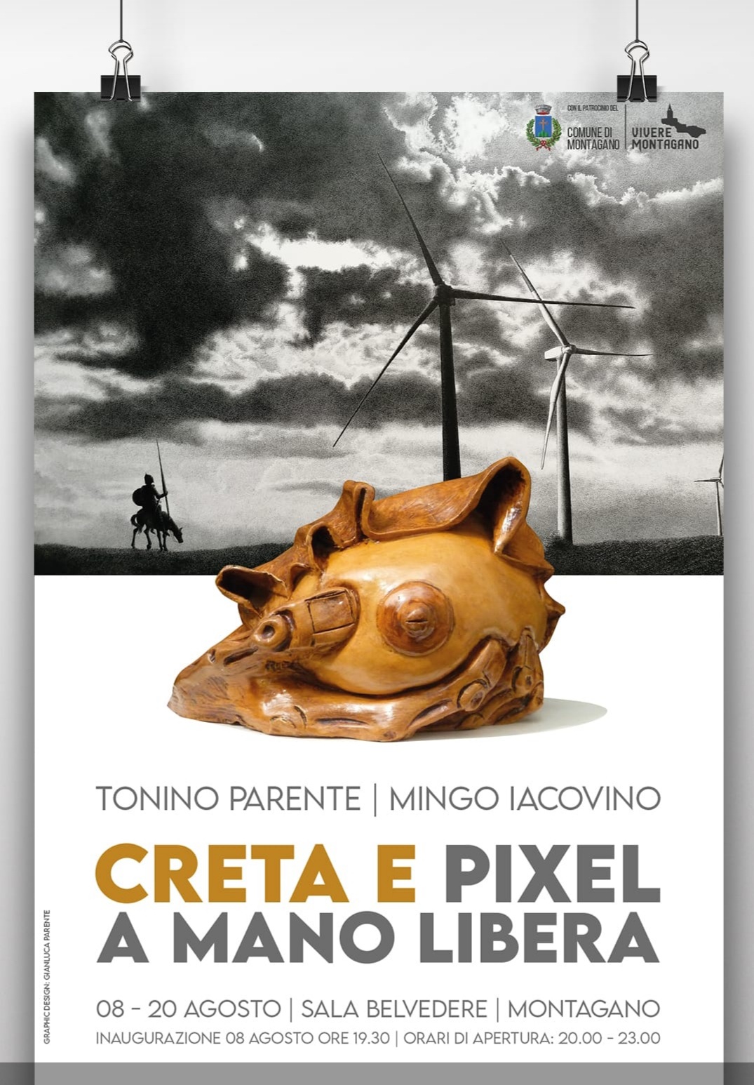 Ancora oggi, venerdì 20 agosto 2021, per poter visitare alla Sala Belvedere di Montagano la mostra ‘Creta e Pixel a mano libera’ di Tonino Parente e Mingo Iacovino.