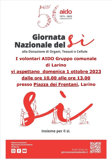 Si terrà domenica 1° ottobre 2023, la Giornata nazionale del Sì promossa da Aido, Associazione nazionale per la donazione di Organi, Tessuti e Cellule.