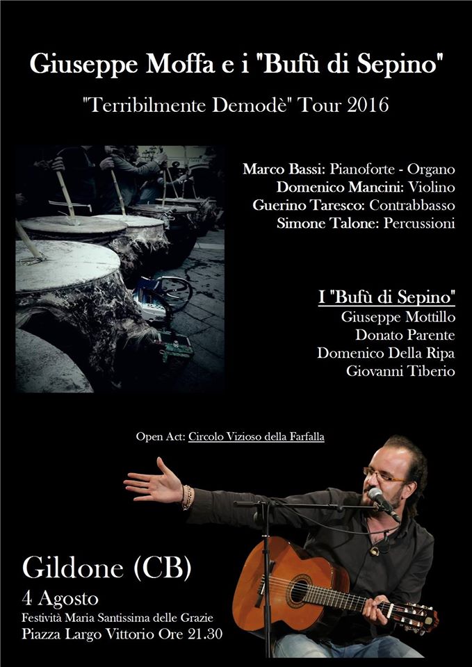 Il programma di eventi in cartellone prevede due spettacoli: il 4 agosto Giuseppe Moffa con i bufù di Sepino, il 5 agosto con i Riserva Moac.