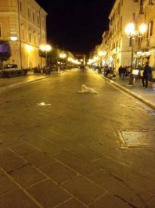 Fatto sta che più di qualcuno non vedendolo in giro si era preoccupato per la sua salute. Ma non appena la città è tornata alla normalità, anche lui è presto ritornato alle sue abitudini quotidiane godendosi la pace comodamente sdraiato in mezzo al corso del capoluogo. Non resistendo alla gioia di rivedere nuovamente il bel cagnone c’è stato anche chi lo ha fotografato, postando subito dopo la sua foto sul famoso social network Facebook. Lui da vero divo impassibile allo scatto dei curiosi ha continuato il suo riposo, per buona pace di quanti erano preoccupati e che ora sono più sereni sapendolo in buona salute.