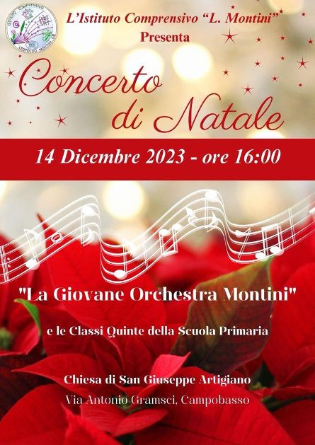 Anche quest’anno l’Istituto Comprensivo Montini di Campobasso torna a diffondere la sua musica con le note della Giovane Orchestra, formata dagli alunni del percorso ad indirizzo musicale della Scuola Secondaria di I grado, diretta dalla prof.ssa Marinella Minelli e dal gruppo delle ‘Piccole note’ composto dalle classi quinte della Scuola Primaria, diretto dalla prof.ssa Wanda Petti.