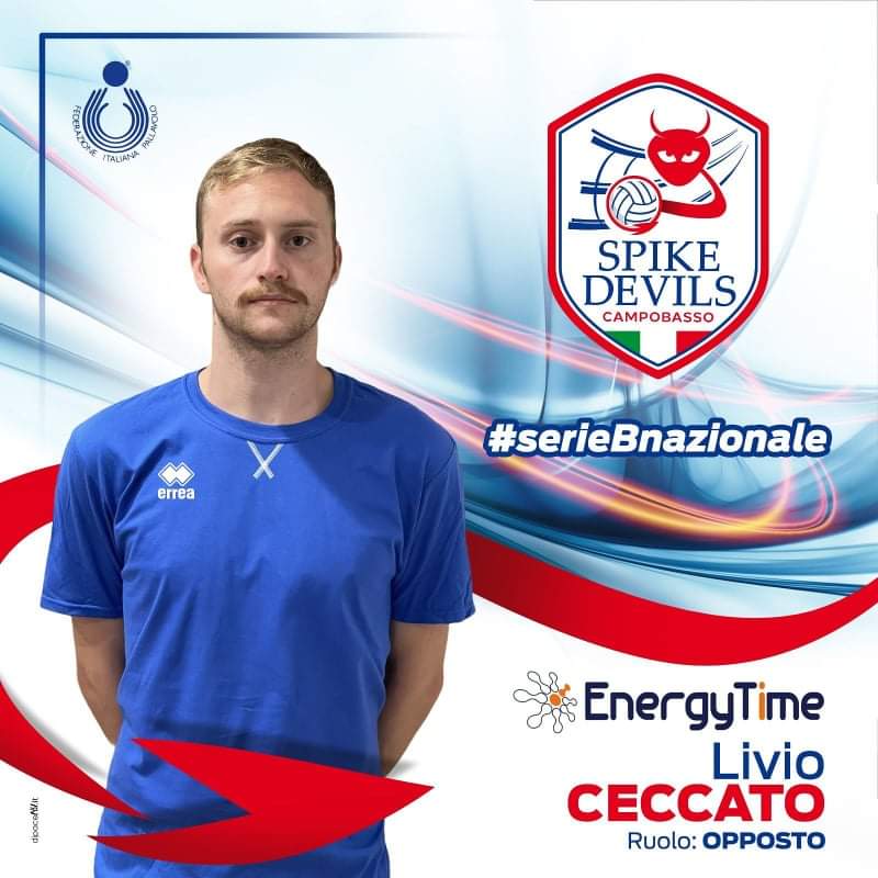 Resta alla corte di mister Maniscalco: Livio Ceccato. L’opposto di Avellino è reduce da un ottima stagione che lo ha visto protagonista con l’Energy Time non solo in Serie C ma anche in Serie D con la conquista della medaglia di bronzo alle finali nazionali. Un giocatore capace di ricoprire più ruoli dal martello all’opposto, Livio è pronto a mettere a disposizione della squadra: tecnica, grinta e cuore. Alle porte una stagione importante la prima in Serie B per Ceccato e per l’Energy Time Spike Campobasso.