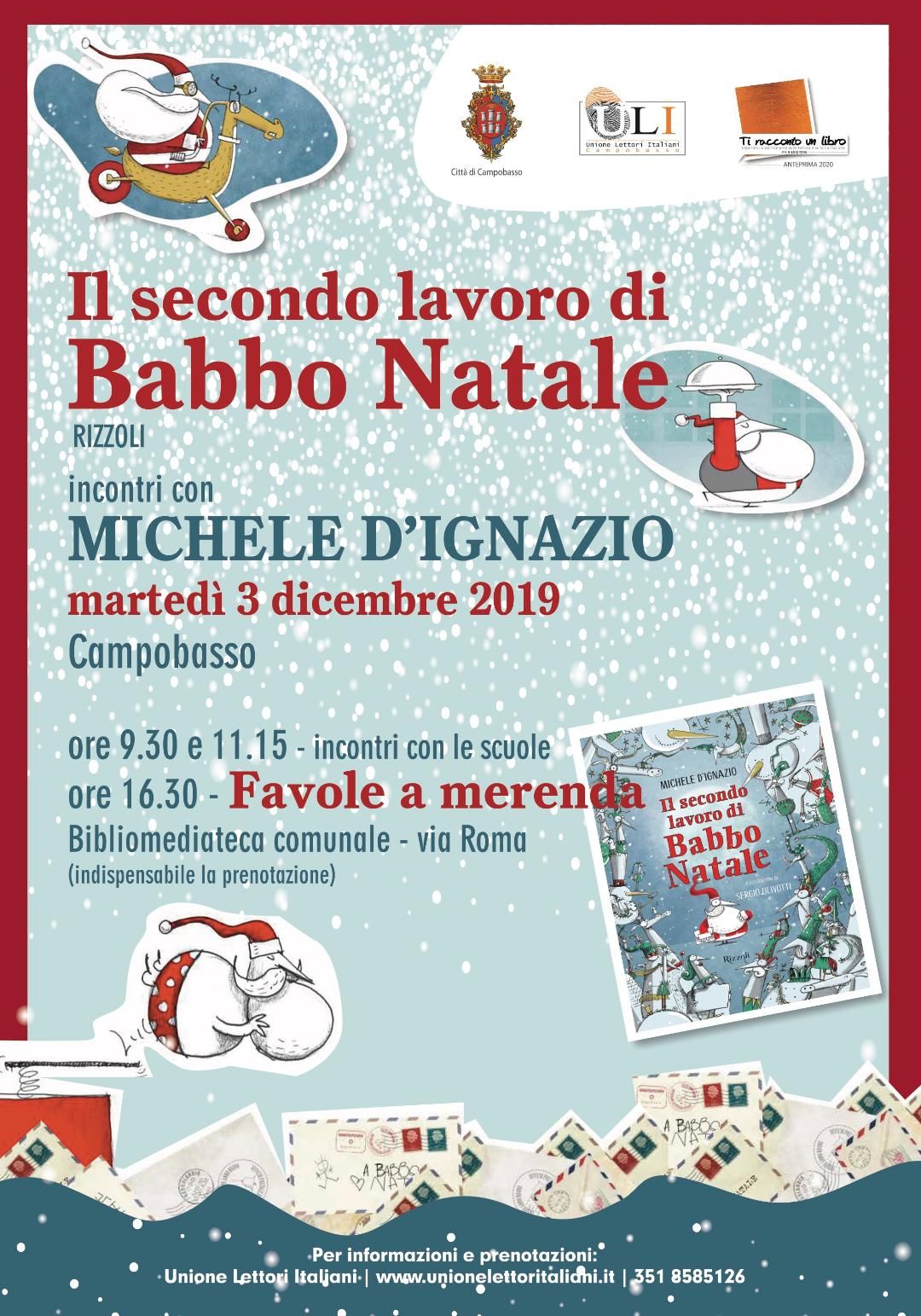 A raccontarne le mille peripezie, davanti a una gustosa merenda, sarà Michele D’Ignazio che nel suo Il secondo lavoro di Babbo Natale affronta diversi temi che caratterizzano il nostro tempo. A cominciare da quello ambientale per poi finire con un pizzico di ironia sull’eccesso di burocrazia e di tecnologia che scandisce inesorabilmente la nostra vita.