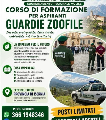 Fare Ambiente Molise, associazione territoriale del movimento ecologista europeo, ha presentato in queste ore il nuovo corso di formazione per aspiranti Guardie Zoofile. Si tratta di un percorso educativo rivolto a donne e uomini interessati a impegnarsi volontariamente nella tutela degli animali e dell’ambiente.