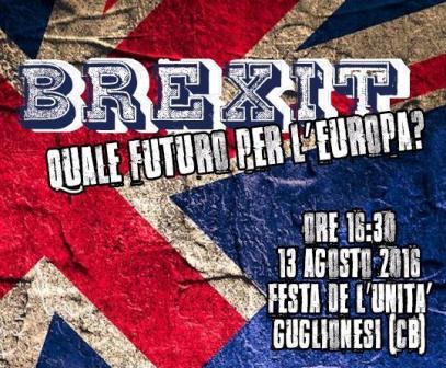 Un interessante convegno è in programma sabato 13 agosto 2016 a Guglionesi, nell’ambito della Festa dell’Unità. Dalle ore 16,30, infatti, si parlerà di “Brexit: quale futuro per l’Europa?”.
