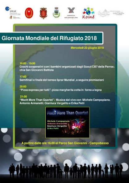 Il Comune di Campobasso, attraverso gli enti gestori dei progetti Sprar, aderisce alla Giornata del rifugiato con una serie di iniziative che partono oggi 18 giugno 2018 per concludersi sabato 23.